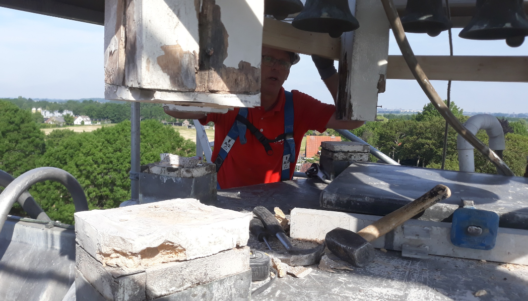 Nadat de staanders van de dakruiter gefixeerd waren op een bodemplaat en de dakruiter in de stroppen van de kraan is gehangen, zijn de staanders doorgezaagd. De dakruiter is van het dak gehesen en op een vrachtwagen geplaatst waarna de dakruiter naar onze werkplaats in Culemborg is vervoerd. In Culemborg is het carillon gedemonteerd, de staanders vervangen en het gereviseerde carillon weer gemonteerd. Nadat de werkzaamheden aan de dakruiter gereed waren is op het dak van het oude stadhuis de bestaande constructie aangepast zodat de dakruiter weer geplaatst kon worden. Inmiddels is de dakruiter weer op zijn plaats gezet en speelt het carillon weer ieder uur.